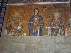 We then went to St. Sophia's Church (which became a mosque and is now a museum) established by the Byzantine empire (which came before the Ottoman Turk empire, for the record). The interesting thing about St. Sophia's Church is that a lot of the beautifully tiled Christian images were "overwritten" when the Ottoman Turks took over (since Muslims do not believe in idolatry). Now they have slowly uncovered what was underneath which makes for an interesting historical lesson about religion (topics I discuss elsewhere on this website>)